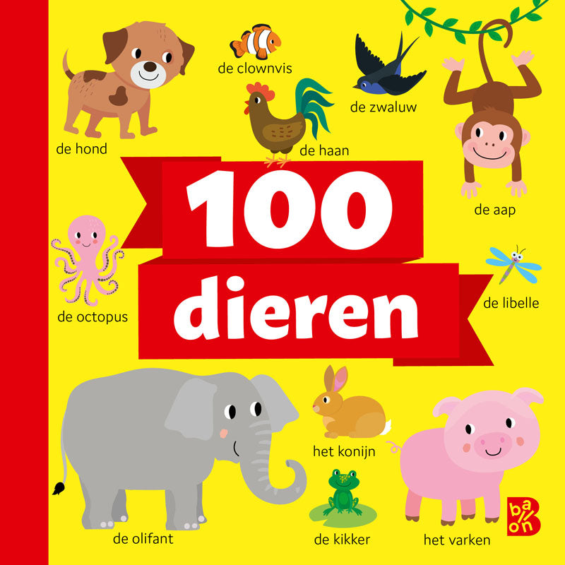In dit kijkboek voor de kleintjes vind je vrolijke tekeningen van 100 dieren. Zo leert baby heel wat bij over huisdieren, boerderijdieren, babydieren, ... Bij elke dierennaam staat het lidwoord. Een ideaal boekje om woordenschat uit te breiden.