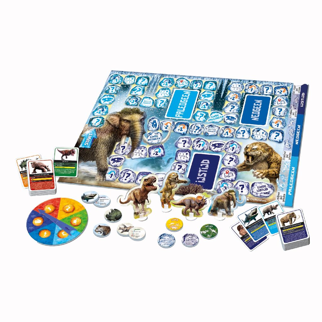Een boeiend bordspel met quizzen waarmee kinderen via de prehistorie de angstaanjagendste dinosaurussen kunnen leren kennen. Het speelbord kan aan 2 zijden worden gebruikt: aan de ene kant staan de prehistorische tijdperken met de dinosaurussen, aan de andere kant de ijstijd en de eerste zoogdieren. Drie verschillende spelmodussen en veel quizkaarten om op eenvoudige en leuke wijze nieuwe dingen te leren. Een spel dat geschikt is voor schoolgaande kinderen, ontworpen om hen te ondersteunen bij het leren door dezelfde onderwerpen van school op een speelse en onderhoudende manier te presenteren. Om met plezier nieuwe dingen te leren!