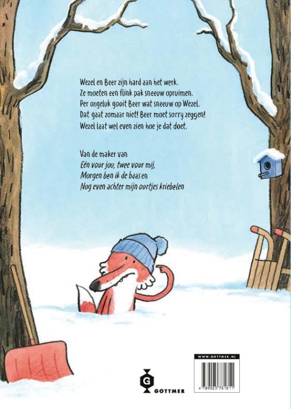 Wezel en Beer moeten samen een berg sneeuw opruimen. Maar als Beer per ongeluk sneeuw op Wezel gooit, loopt de samenwerking flink mis. Wezel wordt boos, heel boos. Dat gaat zomaar niet! Beer moet sorry zeggen. Maar excuses aanbieden, dat blijkt nog niet zo makkelijk... Met veel humor en herkenbare emoties laat dit prentenboek over vriendschap en verontschuldigen zien dat het soms lastig is om een fout toe te geven, maar dat het altijd loont.