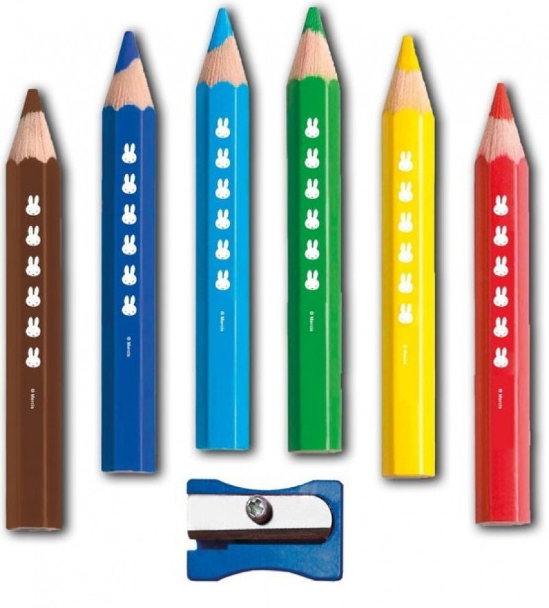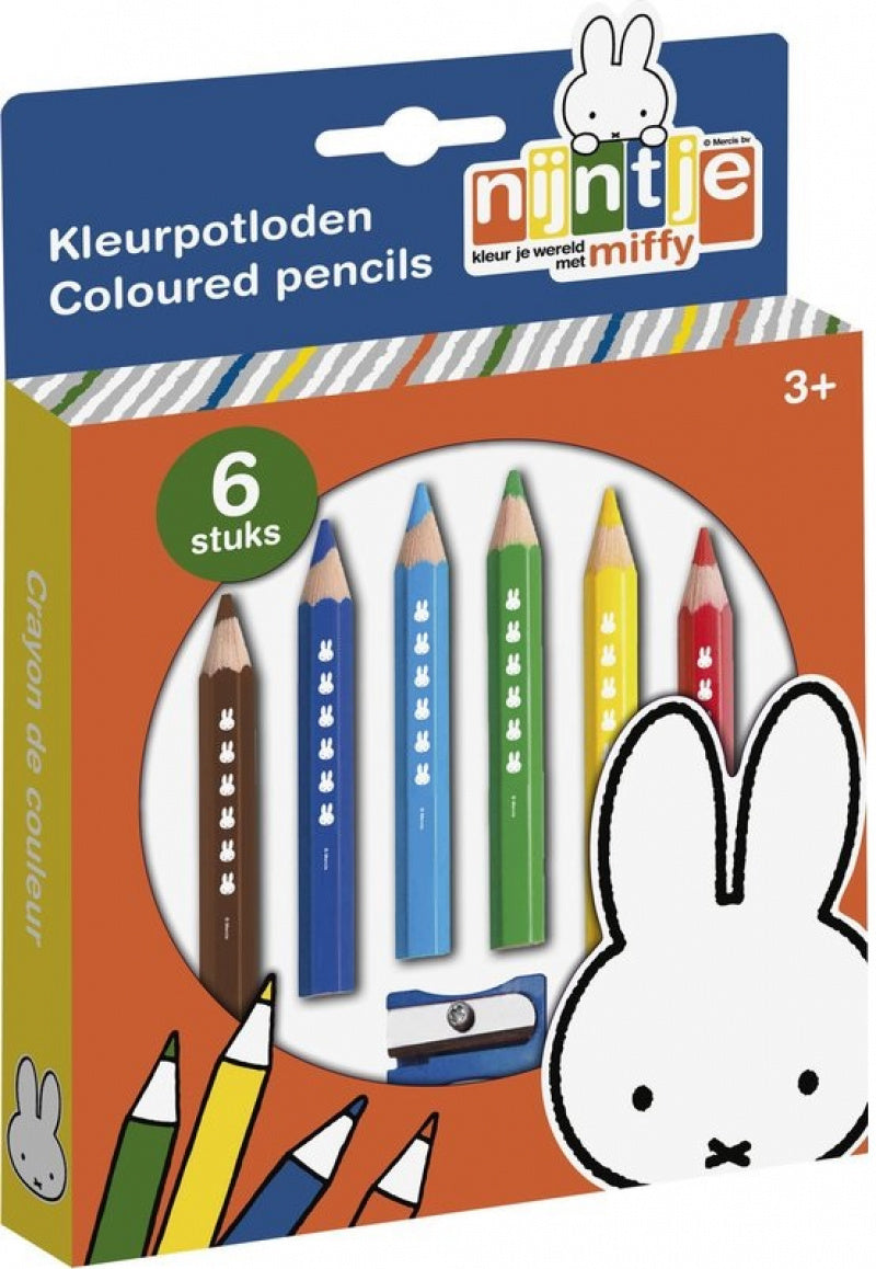 Deze extra dikke en korte nijntje kleurpotloden zijn speciaal gemaakt voor gebruik door de allerkleinsten. De set bestaat uit 6 potloden in heldere kleuren en een speciale slijper. Gebruik voor het slijpen de bijgevoegde kleurpotlodenslijper, dat geeft nog langer plezier van de kleurpotloden.