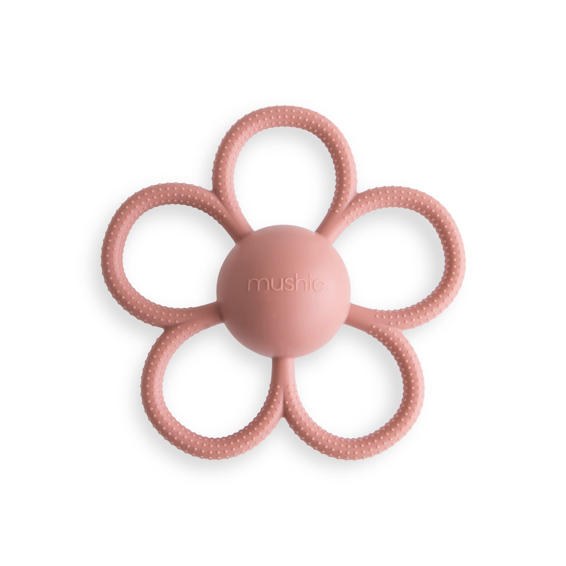 De Daisy Rammelaar Bijtring is gemaakt van niet-giftig, voedselveilig siliconenwaarop gekauwd kan worden.