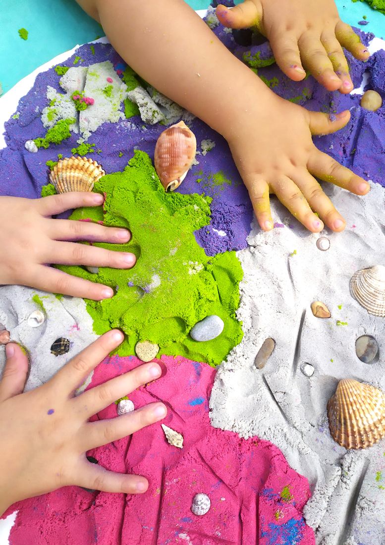 . Zand is perfect om thuis te spelen. Je kunt het maken en met mallen spelen. Het zand valt niet uit elkaar zoals traditioneel zand, droogt niet uit en is vrij van onzuiverheden. Spelen met dynamisch zand ontwikkelt de manuele vaardigheden van kinderen en zorgt voor zintuiglijke ervaringen.