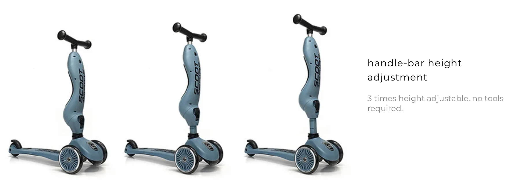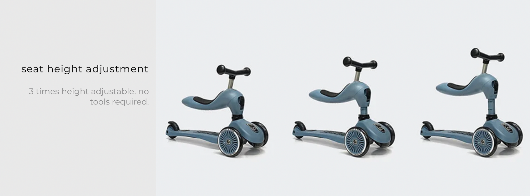 Kinderen houden van spelen en ook van afwisseling in hun spel. Deze slimme Highwaykick, geschikt voor kinderen van 1 tot 5 jaar (80-120 cm), zal hen zeker niet vervelen. Van loopfiets naar step en terug was nog nooit zo eenvoudig! Dankzij zijn stabiliteit geeft dit loopfietsje de allerkleinsten de kans om zich veilig en comfortabel te verplaatsen. Liever een step? Geen probleem! Het loopfietsje transformeer je in 1 seconde naar een step, zonder schroevendraaier of andere werktuigen. Zadel en handvat zijn in hoogte verstelbaar.