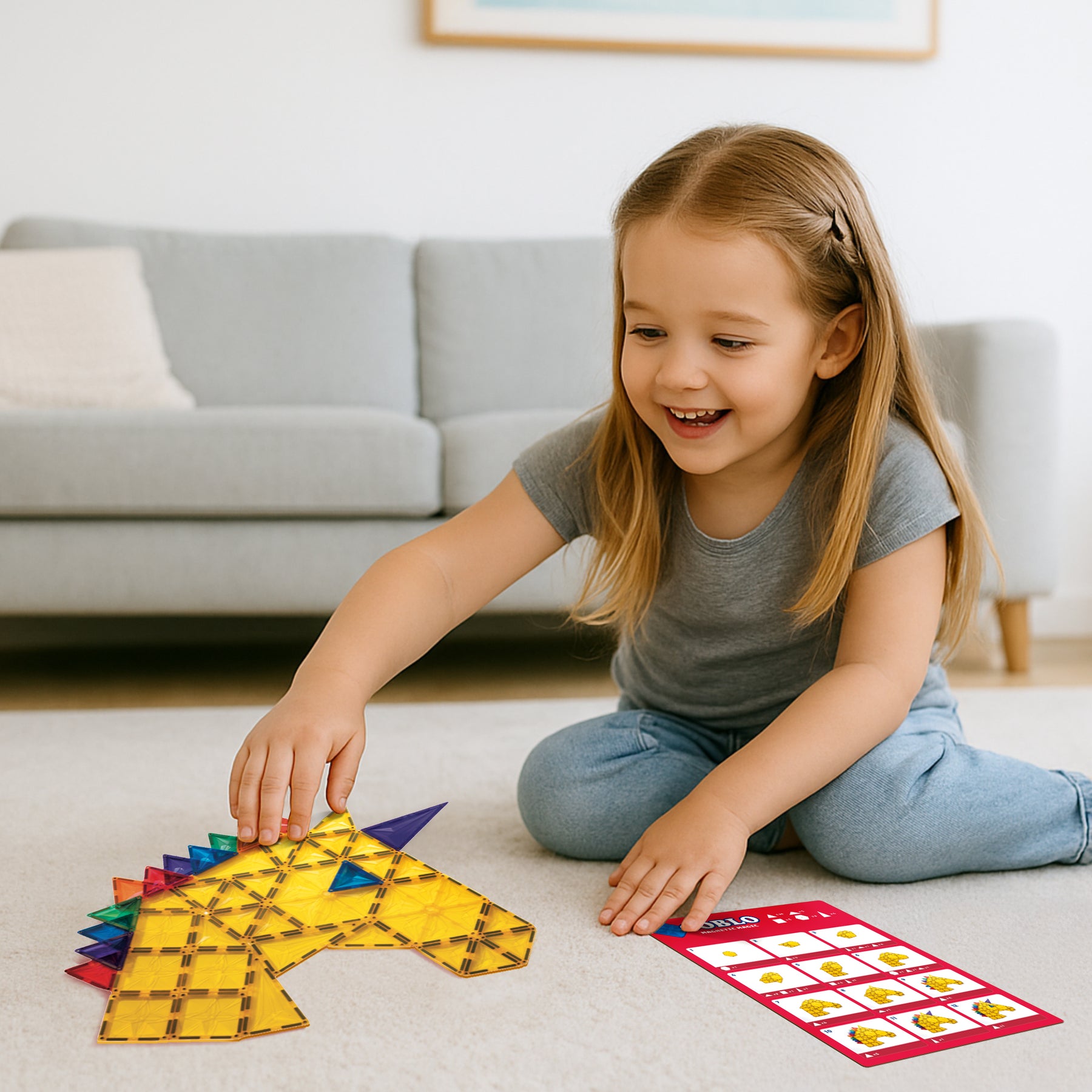Elke kaart legt stap voor stap uit hoe kinderen zelf de bouwwerken