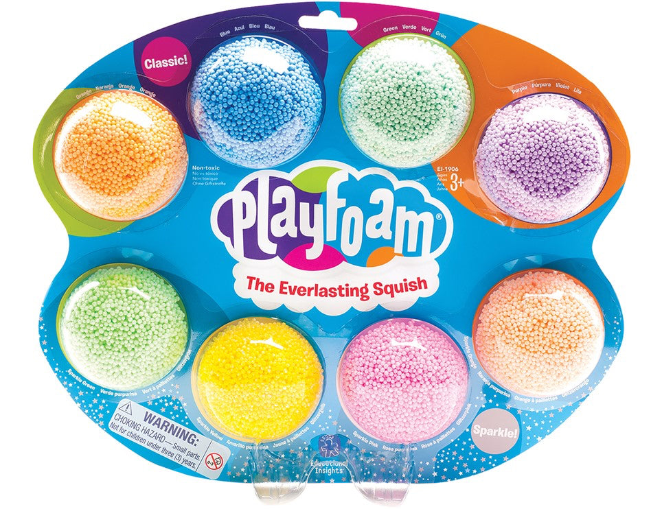 Playfoam is een volledig rommelvrij creatief speelmiddel dat geweldig is voor zintuiglijk spel! Dit met leermiddelen bekroonde product helpt bij het ontwikkelen van de fijne motoriek voor kleine handjes. De niet-giftige formule maakt deze best verkochte Playfoam geweldig voor veilig creatief spelen. Het plakt niet aan handen, kleding of tapijt, maar aan zichzelf! Wat nog beter is, is dat Playfoam nooit uitdroogt, zodat kinderen hun meesterwerken kunnen tentoonstellen in plaats van alles terug in de doos te moeten doen! Kinderen vormen Playfoam eenvoudig in wat ze maar kunnen bedenken voordat ze het platdrukken en opnieuw beginnen, met eindeloze speelmogelijkheden. Geschikt voor kinderen van 3+Mogelijke kleuroverdracht: Sparkle Playfoam® kan kleurvlekken overbrengen op stof en plastic. Vlekken kunnen met olijfolie van tafelbladen worden verwijderd.