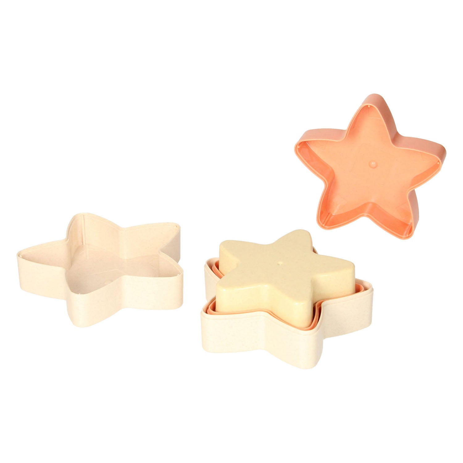 Stapeltoren met 5 doosjes in de vorm van sterren in mooie pastelkleuren. Geschikt voor kinderen vanaf 6 maanden oud.