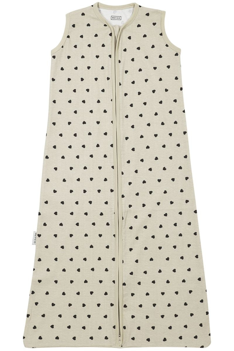 Hoe schattig is deze Meyco Baby slaapzak Sweet Heart? Je kleintje gaat er heerlijk in slapen! De zachte, zandkleurige ondergrond geeft een rustige uitstraling, terwijl de leuke zwarte hartjes een speelse en stoere touch toevoegen. De comfortabele katoenen stof is ademend en perfect voor jouw kleine sweet heart!