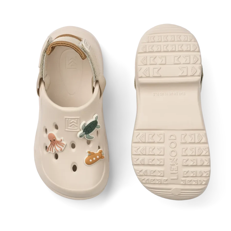 • Charms: 79% SEBS, 21% PVC; UPPER: 100% EVA; PADDING: 85% Spandex, 15% Polyester; OUTSOLE: 100% EVA