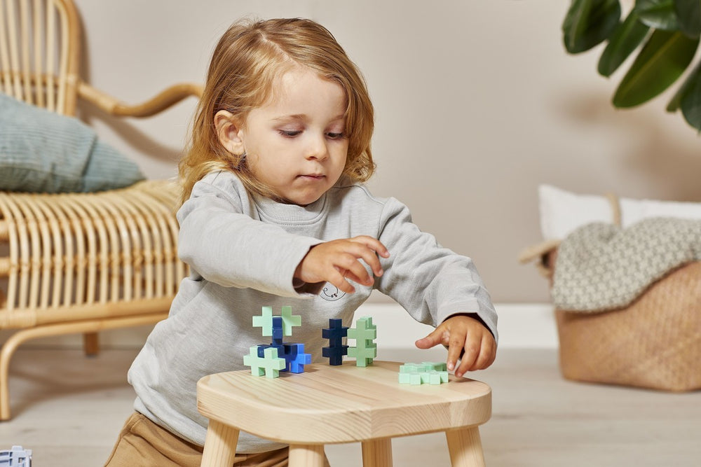 de unieke plusvormige blokjes klikken eenvoudig in elkaar en bieden eindeloze mogelijkheden: van simpele vormen tot indrukwekkende 3D-creaties. geschikt voor kleine handjes én grote ideeën. stimuleert creativiteit, motoriek en ruimtelijk inzicht gemaakt in Denemarken van duurzaam materiaal. vanaf 1 jaar (BIG) tot 5+ jaar (Mini).